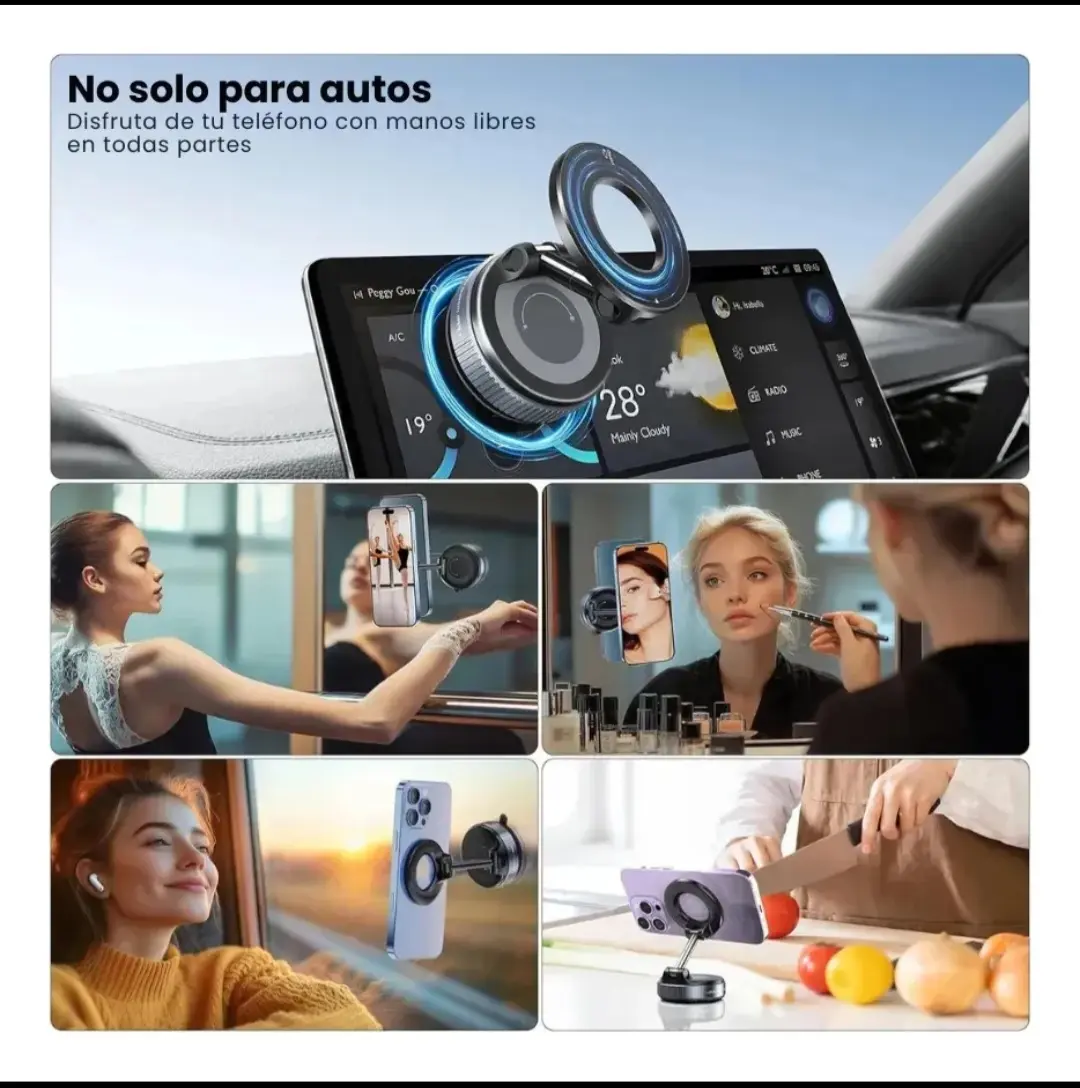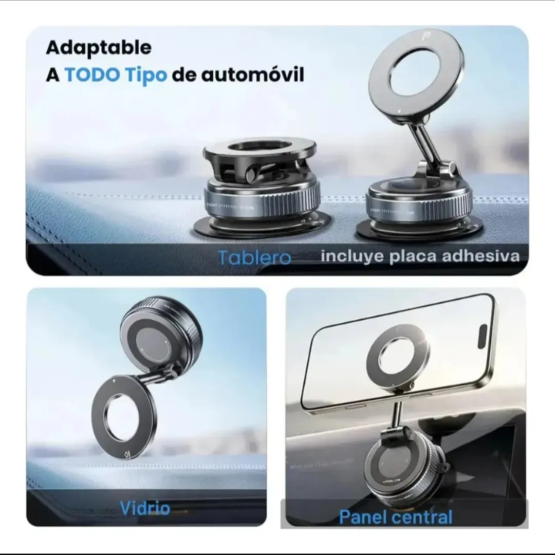 ✔ Adhesión magnética firme que resiste vibraciones del auto.